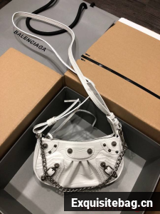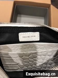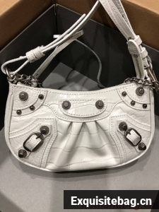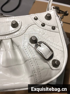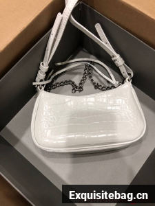 :: Balenciaga LE CAGOLE MINI PURSE WITH CHAIN CROCODILE EMBOSSED 9016 white