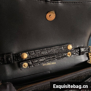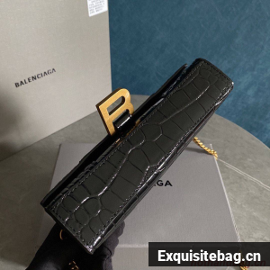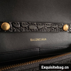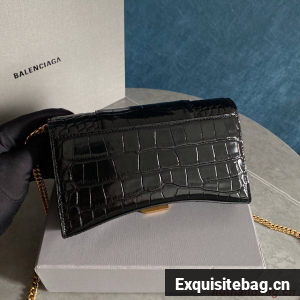 Balenciaga HOURGLASS Wallet With Chain Crocodile Embossed 656050 Black