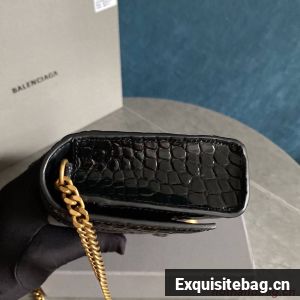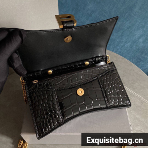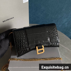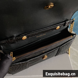 :: Balenciaga HOURGLASS Wallet With Chain Crocodile Embossed 656050 Black