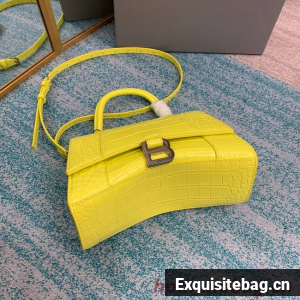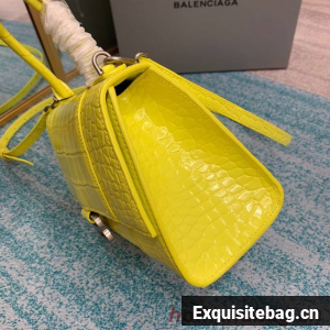 Balenciaga HOURGLASS SMALL TOP HANDLE BAG crocodile embossed calfskin B108895C yellow