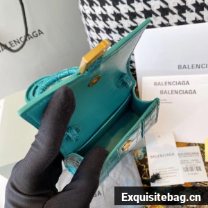 Dimensions : L4,7 x H3,9 x W1,7 inch• Metallized crocodile embossed calfskin• Curvilinear shape• One handle• Adjustable and removable crossbody leatherstrap• Studded magnet closure• B logo hardware• 1 back pocket• Nappa lambskin lining• Made in Italy• Wipe with a soft clothMaterial: 100% calfskinProduct ID: 6373721S49M8000Replica Balenciaga Comes with dust bag, authentication cards, and pamphlets.