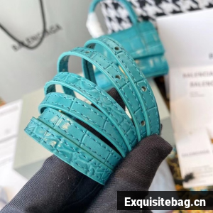 Balenciaga WOMENS HOURGLASS MINI TOP HANDLE BAG M8000 light blue