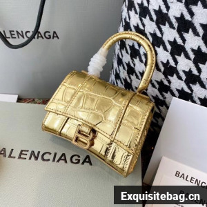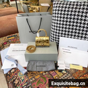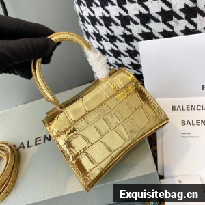 Balenciaga WOMENS HOURGLASS MINI TOP HANDLE BAG M8000 gold