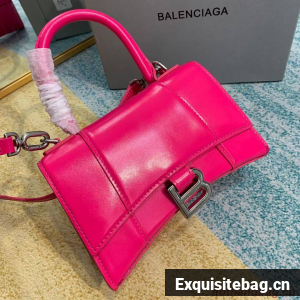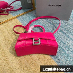 Balenciaga Hourglass XS Top Handle Bag shiny box calfskin 28331 neon pink