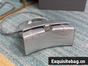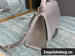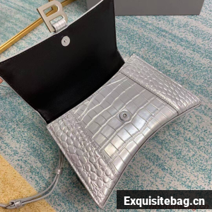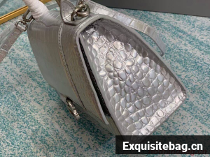 Balenciaga HOURGLASS SMALL TOP HANDLE BAG crocodile embossed calfskin B108895E silver