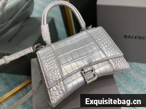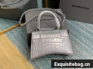 :: Balenciaga HOURGLASS SMALL TOP HANDLE BAG crocodile embossed calfskin B108895E silver