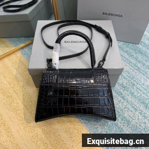 :: Balenciaga HOURGLASS SMALL TOP HANDLE BAG crocodile embossed calfskin B108895F