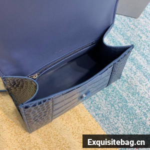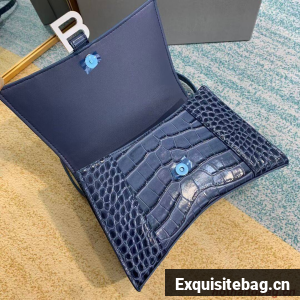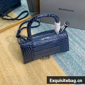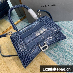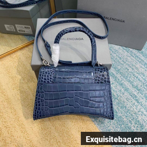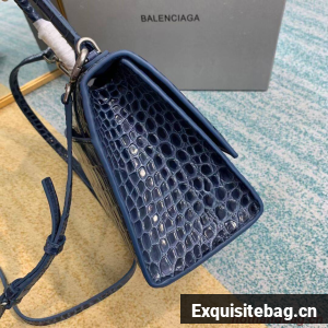 Balenciaga HOURGLASS SMALL TOP HANDLE BAG crocodile embossed calfskin B108895E blue