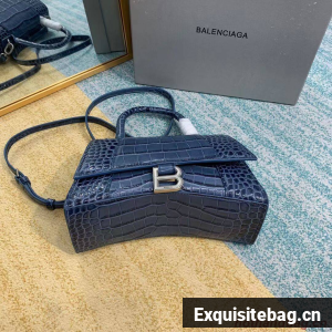 :: Balenciaga HOURGLASS SMALL TOP HANDLE BAG crocodile embossed calfskin B108895E blue