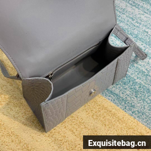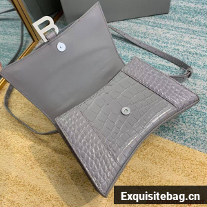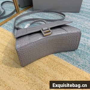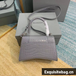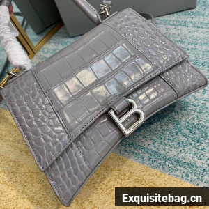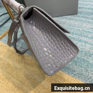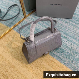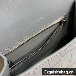 Balenciaga HOURGLASS SMALL TOP HANDLE BAG crocodile embossed calfskin B108895E grey