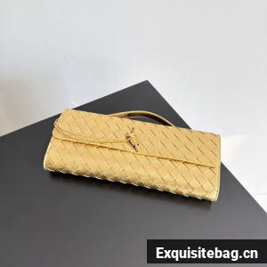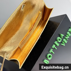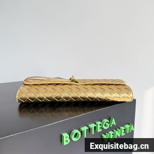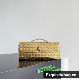 Bottega Veneta Original Twill Leather Long Clutch Andiamo Handle Bag 741511 Gold