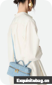 • Intrecciato suede vanity case with detachable strap• One main compartment, one flat pocket• Zipped closure• Lining: LambskinHardware: Gold finish• Made in: Italy• Product code: 789109V1QE71729ChatGPT said: • Height: 12.5 cm (4.9") • Width: 22 cm (8.7") • Depth: 5 cm (2") • Handle drop: 4.5 cm (1.8") • Strap drop: 55 cm (21.7")Replica Bottega Veneta Comes with dust bag, authentication cards, and pamphlets.