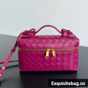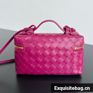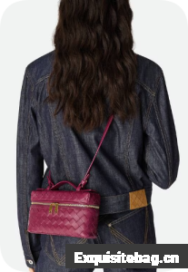 Vanity case in Intrecciato wood-embossed laminated leather with detachable strap.