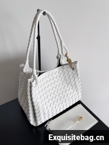 Shoulder bag in supple Intrecciato leather with signature knot detail and detachable cross-body strap.