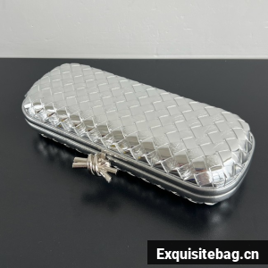 Minaudière clutch with elongated silhouette meticulously crafted from soft padded Intreccio leather.
