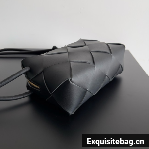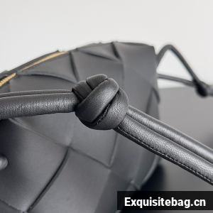 Pouch in Intrecciato nappa leather with adjustable tubular strap featuring sliding knot details.