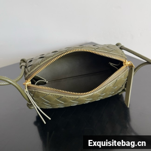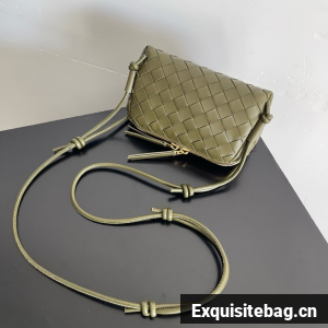 Pouch in Intrecciato nappa leather with adjustable tubular strap featuring sliding knot details.