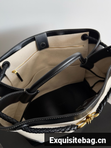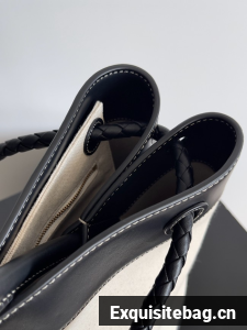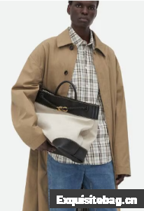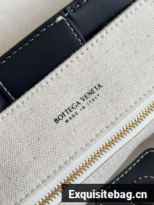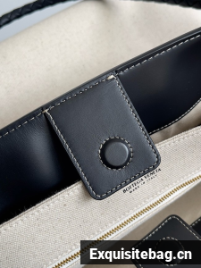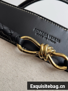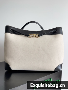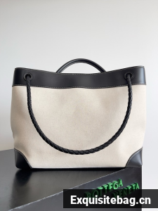 Top handle bag in calf leather and canvas with signature knot detail and sliding cross-body strap.