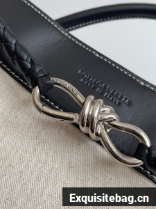 Top handle bag in calf leather and canvas with signature knot detail and sliding cross-body strap.Large top handle bag in calf leather and canvas with sliding cross-body strap• Compartmented interior with one zipped pocket, two open pockets• Magnetic closure• Material: linen, cotton, polyurethane• Lining: Canvas• Color: Natural/Black• Hardware: silver finish• Height: 35 cm | 13.8"• Width: 42 cm | 16.5"Depth: 18 cm | 2.6"• Handle drop: 9 cm | 3.5"Made in: ItalyProduct code: 786194VMAXN9803Replica Bottega Veneta Comes with serial numbers, authenticity card.