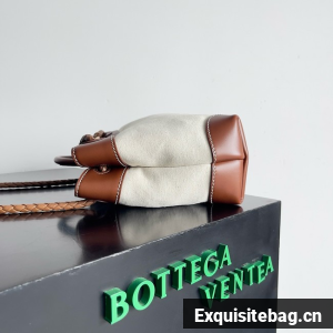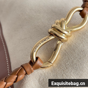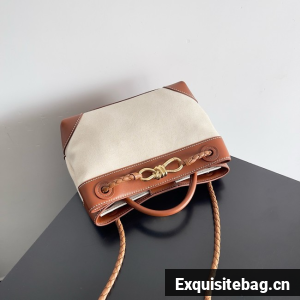 Top handle bag in calf leather and canvas with signature knot detail and sliding cross-body strap.