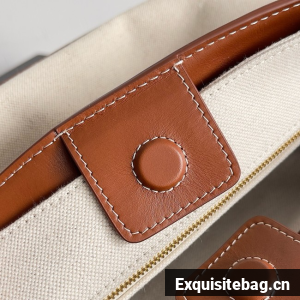 Small top handle bag in calf and canvas with sliding cross-body strap