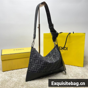 Fendi After FF Camellia-colored leather bag with laser-cut FF F7604 black