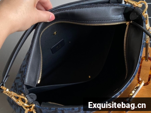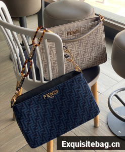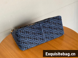 Fendi O Lock Zipper Brown FF jacquard fabric and leather bag F1068 blue