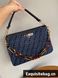 :: Fendi O Lock Zipper Brown FF jacquard fabric and leather bag F1068 blue