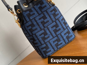 Fendi Mon Tresor Laminated FF jacquard fabric mini bag 8BS010 blue