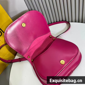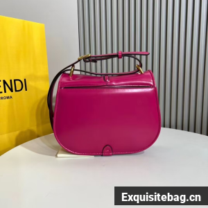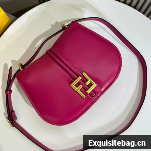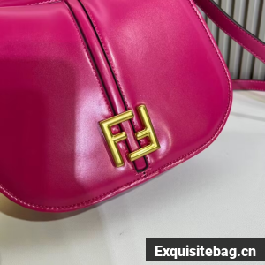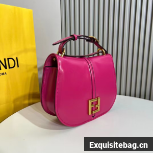 Medium satchel bag with curved, feminine lines and an elongated flap embellished with a metal FF logo. Made of smooth dove-gray leather with embossed edges and details. The sides of the bag are made from tone-on-tone full-grain leather.