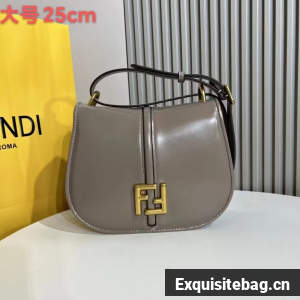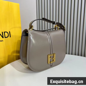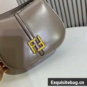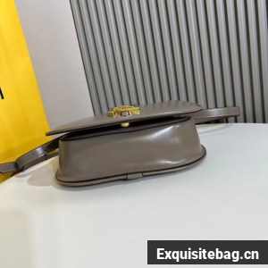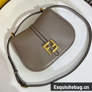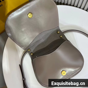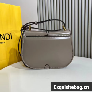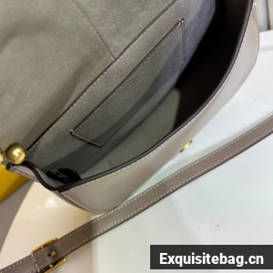 Medium satchel bag with curved, feminine lines and an elongated flap embellished with a metal FF logo. Made of smooth dove-gray leather with embossed edges and details. The sides of the bag are made from tone-on-tone full-grain leather.