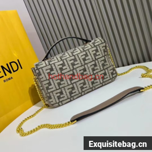 Fendi Baguette canvas bag with FF embroidery F1531 gray