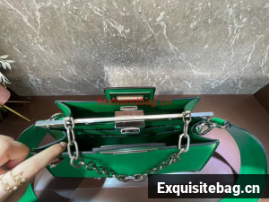 Medium Peekaboo Cut bag made of leather. A new evolution of the iconic Peekaboo ISeeU, it has a striking horizontal cut that accentuates its classic features and reveals the metal bar and the iconic twist lock on both sides.