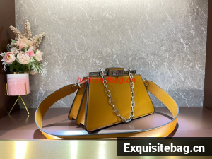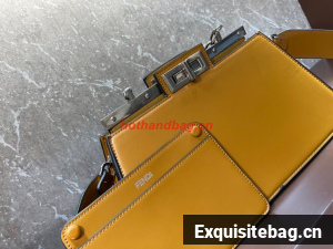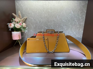 Medium Peekaboo Cut bag made of leather. A new evolution of the iconic Peekaboo ISeeU, it has a striking horizontal cut that accentuates its classic features and reveals the metal bar and the iconic twist lock on both sides.