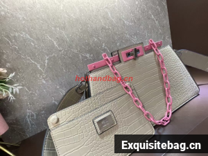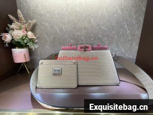 Medium Peekaboo Cut bag made leather. A new evolution of the iconic Peekaboo ISeeU, it has a striking horizontal cut that accentuates its classic features and reveals the metal bar and the iconic twist lock on both sides.
