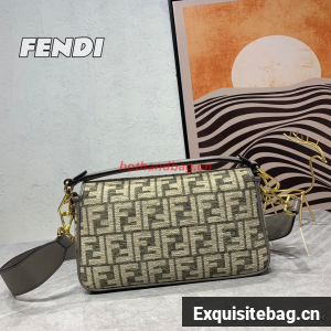 :: Fendi Baguette Dove gray FF tapestry fabric bag 8BS010B