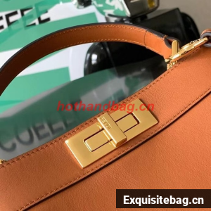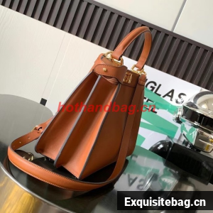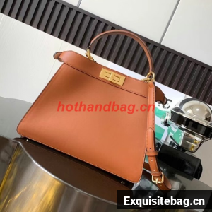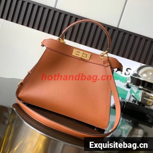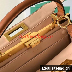 Medium iconic Peekaboo ISeeU bag, made of brown leather and embellished with the classic twist lock on both sides.