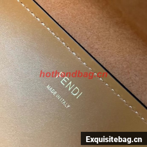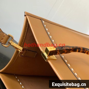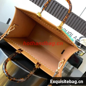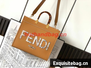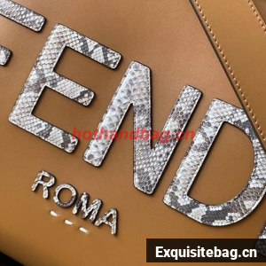 Medium Sunshine Shopper bag made of honey-colored leather, with FENDI ROMA lettering appliqué in python-look printed elaphe and stiff tortoiseshell-effect plexiglass handles.