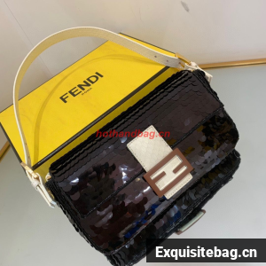 Fendi FF Baguette Gold Metal Sequin Embroidery Bag 2017 Black