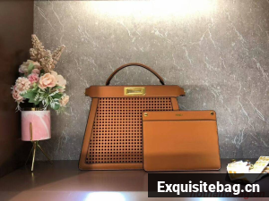 Fendi Peekaboo ISeeU perforated leather bag F1658 brown