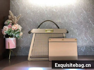 :: Fendi Peekaboo ISeeU perforated leather bag F1658 apricot