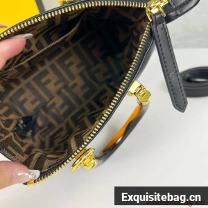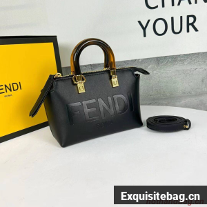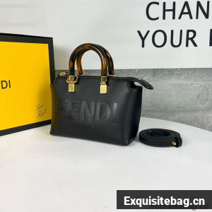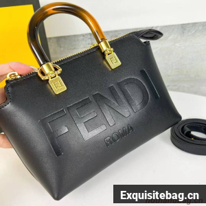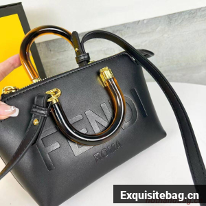 Iconic mini By The Way Boston bag made of leather with hot-stamped FENDI ROMA lettering and rigid tortoiseshell-effect plexiglass handles. Zip fastening.