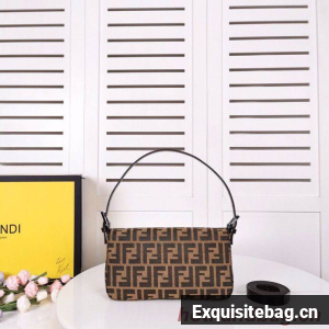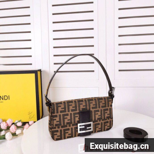 FENDI BAGUETTE fabric bag black 8BR011 Silver Hardware