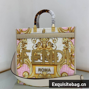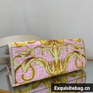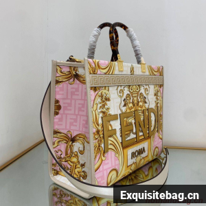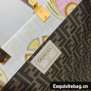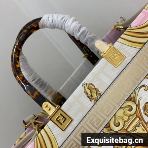 Fendi Tote Fabric Graffiti Print Shopping Bag 23651 White&Pink&Gold