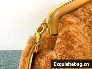 Medium Fendi First bag made of soft, merino wool sheepskin with oversized metal F clasp wrapped in tone on tone nappa leather.