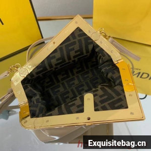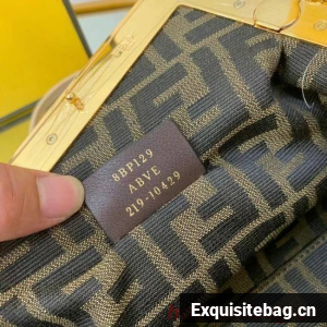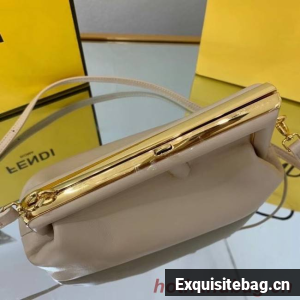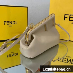 Small Fendi First bag made of soft, nappa leather with oversized metal F clasp wrapped in tone on tone nappa leather.