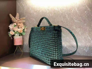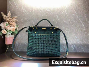 Fendi PEEKABOO X-LITE LARGE green cotton bag 8BN304A