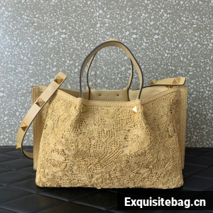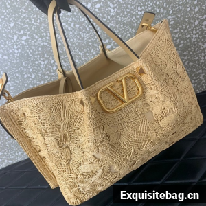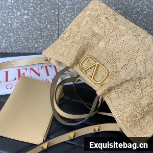 VALENTINO Small RAFFIA MACRAME Shoulder Bag 0220S Apricot