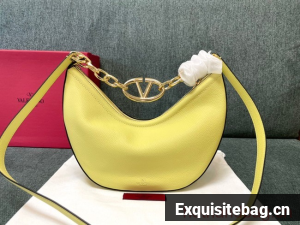 :: VALENTINO Vlogo Moon small leather HOBO bag chain N08J black