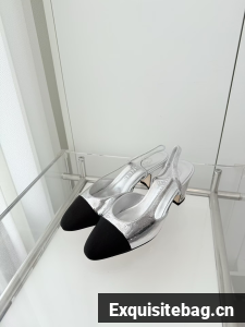 :: Chanel Sandals Calfskin Shoes 6.5CM Heels 63013 Silver